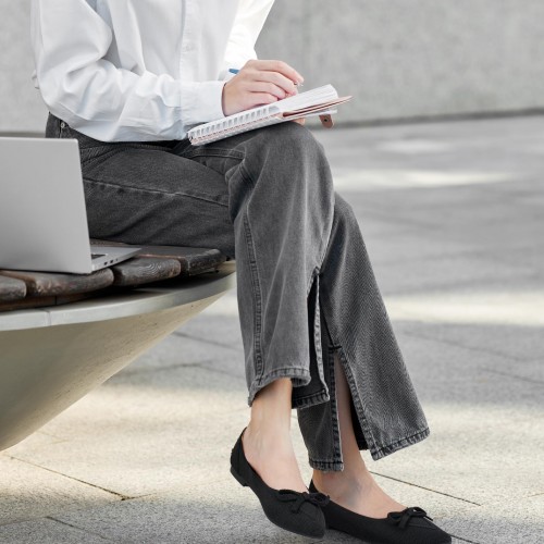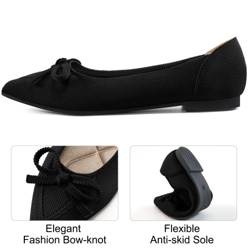 Ablanczoom Ballet Flats Shoes for Women: Dressy Pointed Toe Bow Knit Flats Comfortable Slip On Work Business Shoes for Driving Dating Wedding Black
