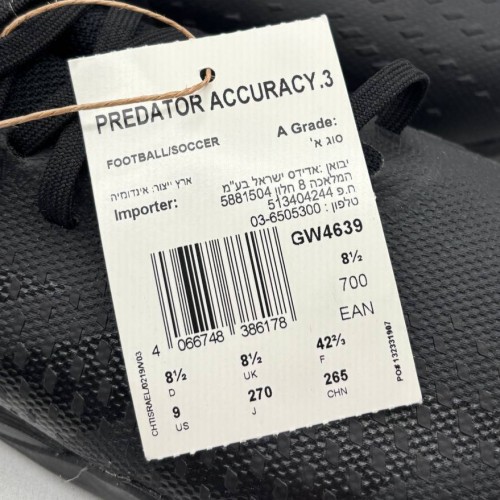 Adidas Men’s Predator Accuracy.3 Soccer Cleats, Black, US 9