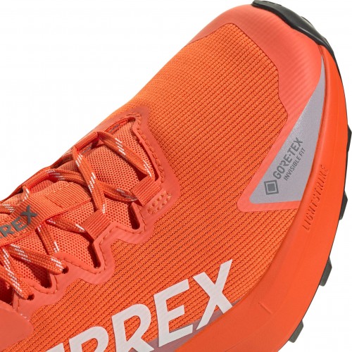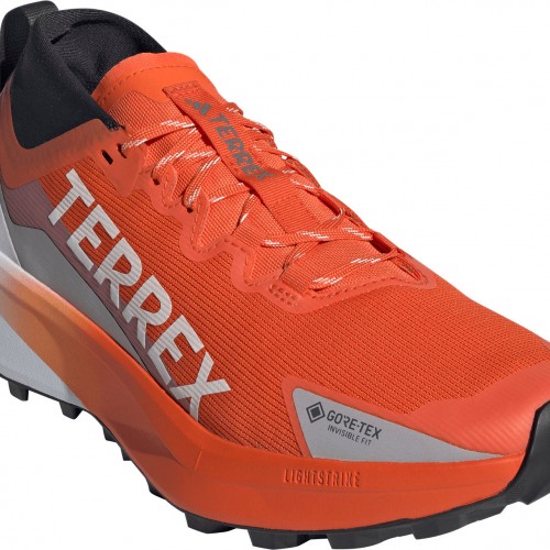 Responsive and supportive, these Terrex Agravic trail running shoes are built for logging miles and adventurous days on the trail in wet, muddy conditions. A waterproof, breathable GORE-TEX membrane seals out wet conditions to keep your feet dry, and you focused on the trail ahead. Abrasion-resistant overlays add trail-proven durability, and the gusseted tongue seals out debris. A Lightstrike 2.0 midsole provides responsive cushioning for stability and comfort on rough terrain, and the rocker shape promotes a smooth roll-off for a fluid pace. The Continental™ Rubber outsole with 4 mm lugged tread maintains secure footing across roots and rocks, wet or dry. This product features at least 20% recycled materials. By reusing materials that have already been created, we help to reduce waste and our reliance on finite resources and reduce the footprint of the products we make.