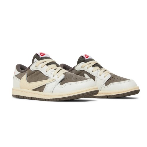 The Air Jordan 1 Retro Low OG SP “Reverse Mocha” by Travis Scott offers a fresh take on the iconic 2019 High-top collaboration. While it shares the same neutral mocha and off-white palette, the colors are strategically swapped for a new look. Crafted for the modern toddler, this shoe offers a fashion forward aesthetic, ensuring a polished and trendy appearance.
