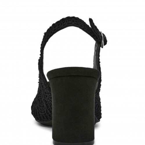 Crochet detailing sling-back pump with the perfect heel height and pointed toe.