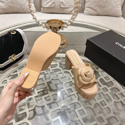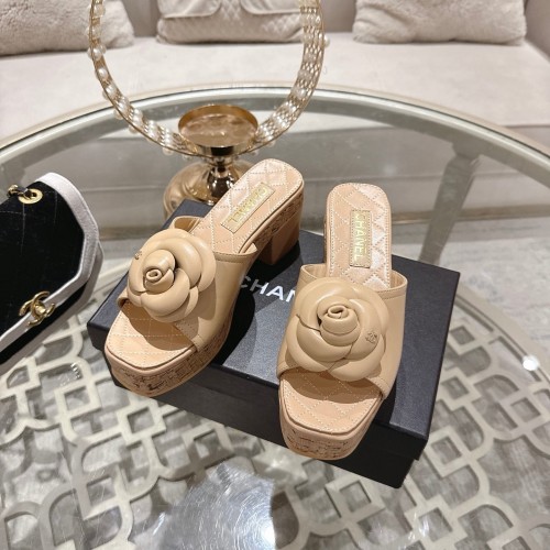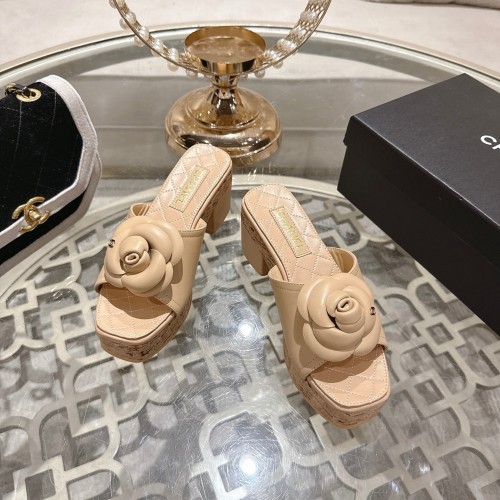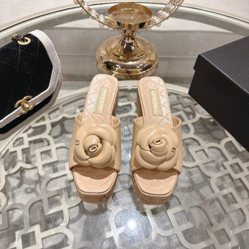 CC 26s Camellia Platform Slippers 65 Beige Lambskin 627049