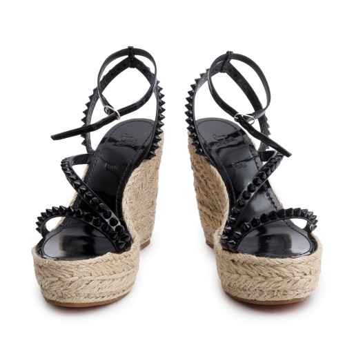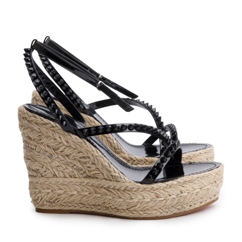 Christian Louboutin Black Patent Leather Mafaldina Zeppa 120 Platform Sandals, Size 40 w/ Box