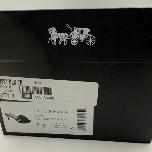 Coach Tillie Leather Black Sandal Heels, Women’s US 7 B