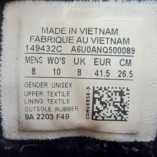 Converse Chuck Taylor All Star High Street 149432C Black Sz M 8/W 10