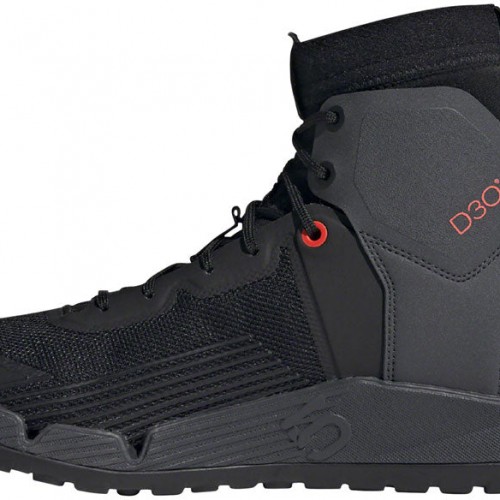 Five Ten Trailcross Mid Pro Flat Shoes – Mens Core Black / Gray Two / Solar Red 10.5. Designed with bikepacking and rugged trails in mind the Trailcross Mid Pro blends a durable hiking-inspired build with a high friction Stealth Phantom rubber outsole.