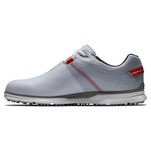 Pro|SL’s comfort has been fortified considerably with the introduction of 100% waterproof performance mesh and Stratofoam in the midsole. The StratoFoam cushioning system uses a proprietary blend of materials to provide optimal support and comfort for conditions encountered while playing golf � swinging, walking and everything in between. Designed to absorb shock for max walking comfort and also maximizes energy return to reduce walking fatigue.