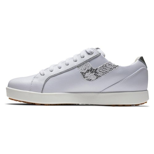 The FootJoy Women’s Links Golf Shoes offer lifestyle fashion with the versatility to be worn on and off course. It features waterproof full grain leather, a lightweight PU underfoot cushion, EVA midsole and a McCall Last.