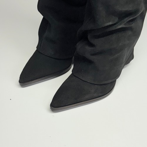 FREE PEOPLE Felicity Foldover Boot Sz 7 WS Knee-High Length Black Suede 84607712