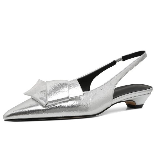 GIGIFOX Kitten Low Heels Bownkot Pointy Toe Leisure Sandals Pleated Slip-on Back Strap Flats Chic Office Ladies Shoes For Woman