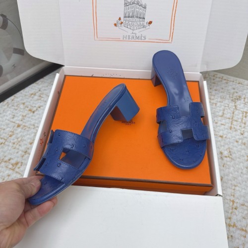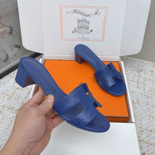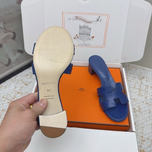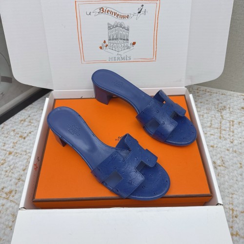 HM 26ss Oran Sandals 50 Blue Encre Ostrich Leather 625131