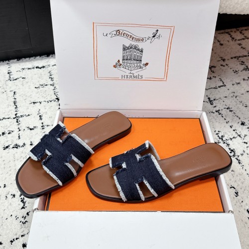 HM 26ss Oran Sandals Dark Brown Canvas Cowhide 617217