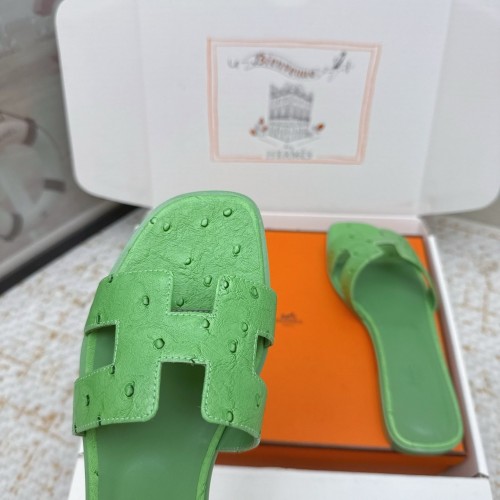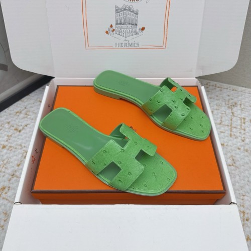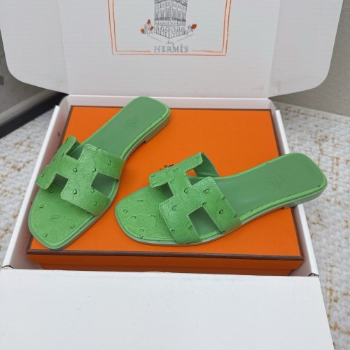 HM 26ss Oran Sandals Green Ostrich Leather 625110