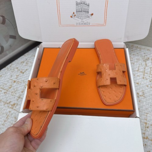 HM 26ss Oran Sandals Orange Ostrich Leather 625093