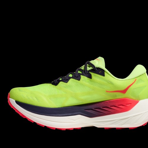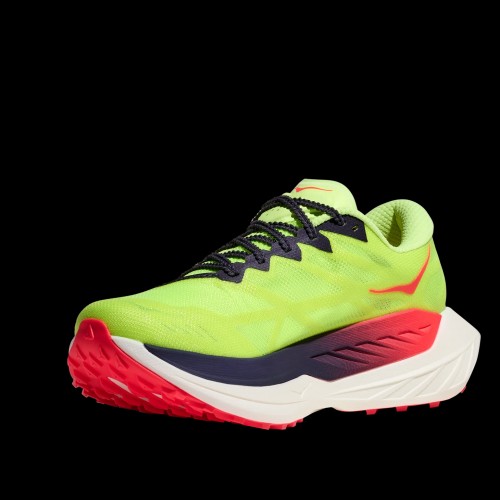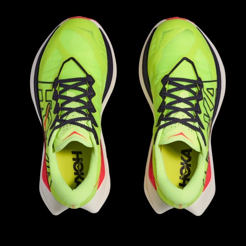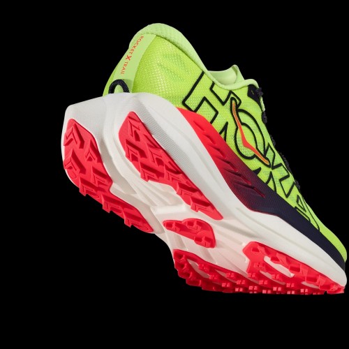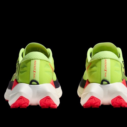 When a trail calls for all-out speed, change into the new Rocket X Trail. With an aggressive, road-racing inspired rocker and H-shaped carbon-fiber plate for dynamic propulsion, this gravel-eater is begging to be set loose. From the pared-back, super-secure upper, to the responsive dual-layer midsole to its lightweight, minimal outsole, this shoe was devised specifically for cruising buff dirt and gravel roads at top speed.
