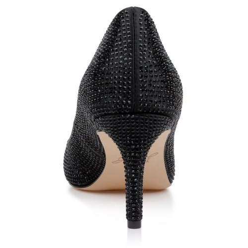Jewel Badgley Mischka Women’s Tyanna Evening Pumps – Black Satin/Rhinestone