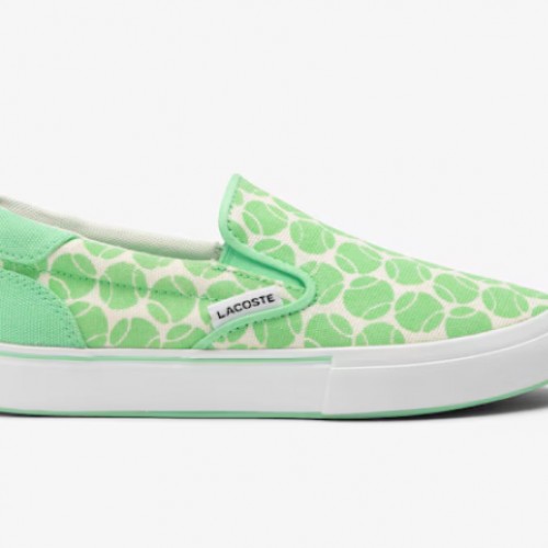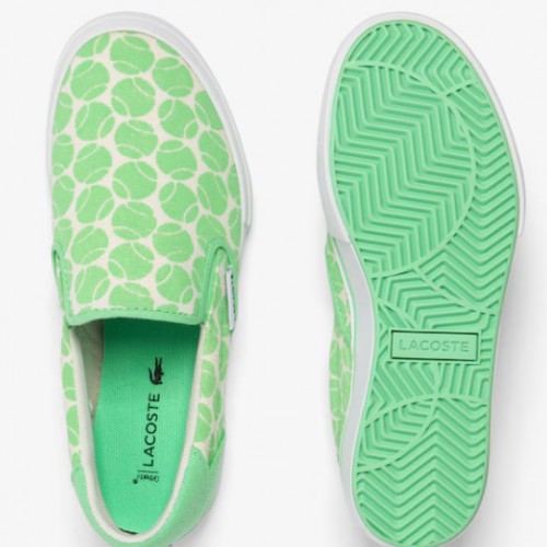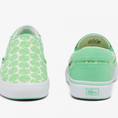 Lacoste Kid’s Jump Serve Slip On Sneakers – Tennis Print (Green/White), 2.5
