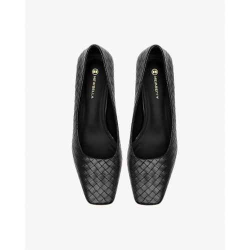 NewBella Women’s Patent Square Toe Low Chunky Block Heel Pumps – Black, Size 7.5