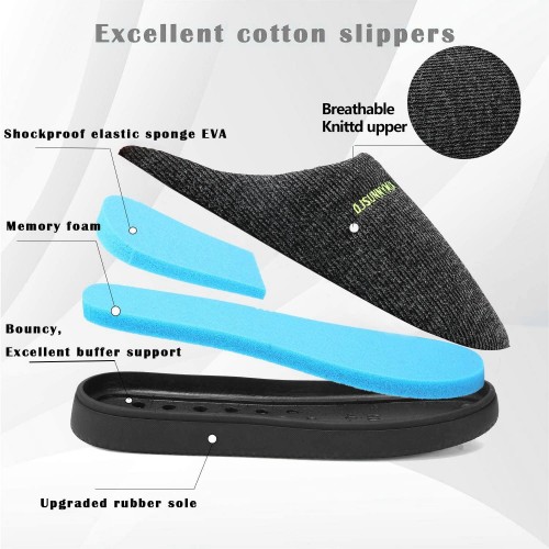 - EXCELLENT QUALITY: new cozy slippers for men is the definition of comfort. The breathable cotton upper is constructed to wick the moisture away and create a cozy zone for your tired feet. The elastic collar is suitable for both standard and wide feet. Comfy and casual house slippers ,the veritable customized comfy after long time working or standing