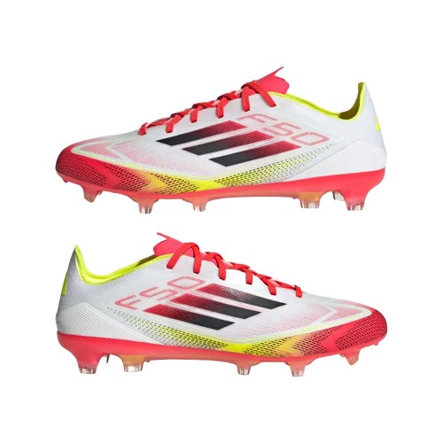 Push your pace to the limit in lightweight adidas F50 footwear engineered for speed. These Pro soccer cleats employ a lightweight Fibertouch upper with Sprintweb 3D texturing for agile dribbling, and a Compression Fit Tunnel Tongue for rock-solid lockdown. The Sprintshell 360 outsole on which they sit is optimized to keep you super-quick on firm ground pitches.