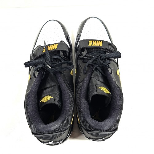The Jordan Legacy 312 Low Black Metallic Gold is a hybrid of three heritage sneakers in the Jordan catalog: the AJ1, the AJ3, and the Air Alpha Force. It comes in a black and white colorway with Metallic Gold accents.
