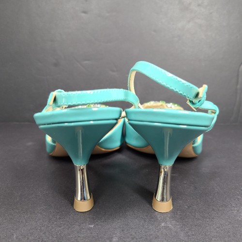 Prada Women’s Slingback Pumps 1I016G Shoes Crystal Embelished Turquoise Sz 9