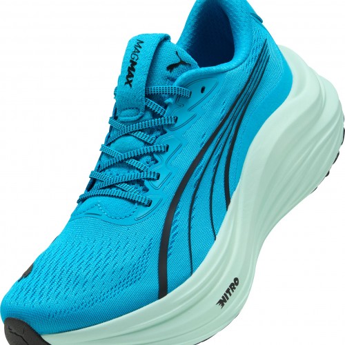 Experience an exhilarating bounce like never before with the MagMax NITRO™. Boasting an impressive amount of cutting-edge NITROFOAM™ technology, these shoes will effortlessly propel you from one mile to the next, filling your stride with excitement and ease. Around the foot you’ll find a comfortable mesh, deluxe knitted tongue and cushioned heel. PUMAGRIP protects the precious NITROFOAM™ and provides top-notch traction keeping you steady on your feet.