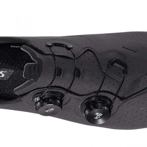 Leveraging data science, we refined every detail of the S-Works Torch’s upper for improved fit and performance. The BOA® cable is shifted down and angled, preventing lift on the ball of the foot and delivering power-enhancing structure while eliminating unwanted pressure or pinching. Adaptive materials allow natural movement of the foot where needed for comfort, while data-driven zonal reinforcement keeps the foot secured for crisp power delivery and optimal efficiency.