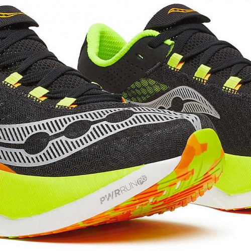 The Saucony Endorphin Pro 4 is a sleek and comfortable fast running shoe designed to give runners an edge during training and racing. Running fast times at distances up to the marathon is easy with the Endorphin Pro, which is also good for long endurance runs at a higher pace. Designed to increase your speed, stability and confidence during every race. Go for gold with this competition shoe!