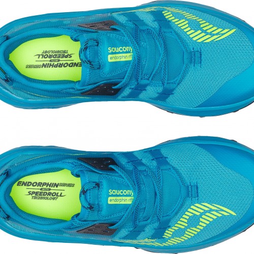 Full speed ahead. The Endorphin Rift packs a punch thanks to high-mileage PWRRUN PB cushioning and SPEEDROLL technology. Fast, light, and as spontaneous as could be, this decorated speed shoe can tackle whatever terrain you throw at it. The thrill begins the minute you lace up. Go ahead, bomb that hill and take charge of your next trail.