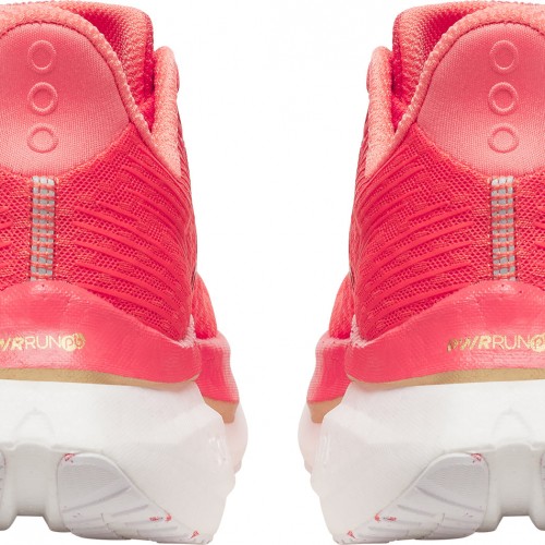 - Energy efficient PWRRUN PB foam bounces back with every step combined with a winged nylon plate that provides torsional rigidity while maintaining flexibility in the forefoot, making for a sure footed, snappy ride