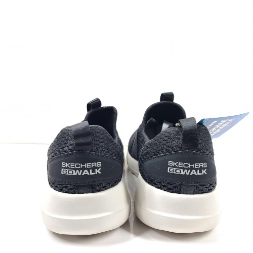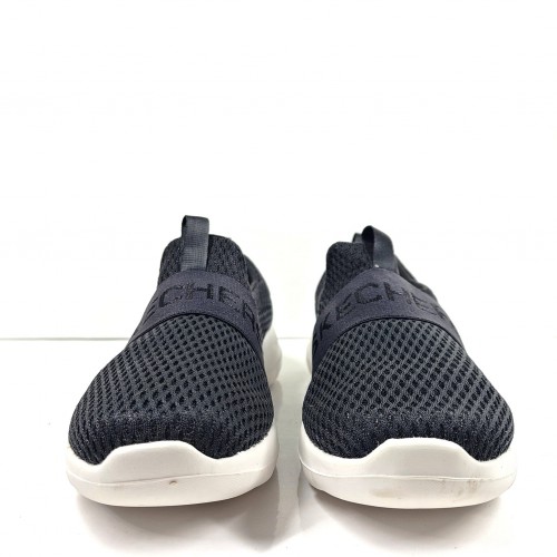 This slip-on features a mesh upper with a stretchable instep strap, Skechers Air-Cooled Goga Mat insole and an innovative 5GEN® cushioned midsole.