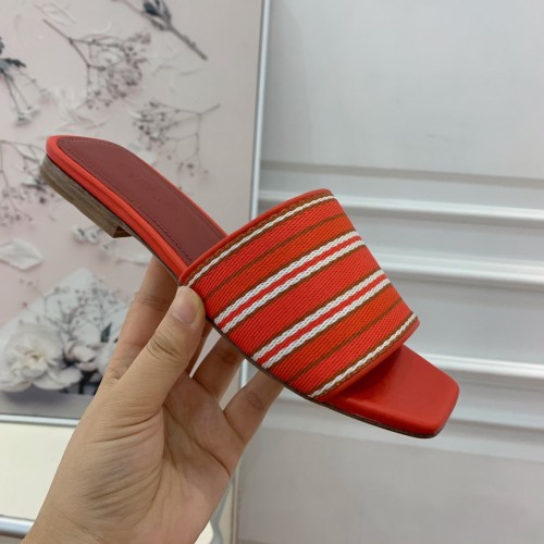 Suitcase Stripe Flat Sandals Red Maroon Leather