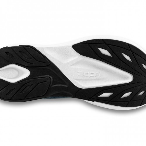 Staying true to Topo’s signature fit, the Aura’s roomy toe box allows for natural toe splay, while the secure midfoot and heel lockdown accommodates a variety of foot shapes. Meanwhile, the durable rubber outsole delivers reliable traction and long-lasting performance on the pavement.