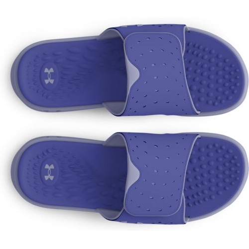 Under Armour Women’s Ignite Pro Slides feature an adjustable synthetic strap with soft foam lining for enhanced comfort and perforations for improved breathability. The medial strap includes a strategic cut-out design to provide pressure point relief. These slides are equipped with a textured foam footbed that delivers exceptional comfort and support. The EVA outsole is lightweight and durable, featuring traction pods in the heel area for reliable grip and cushioning. Designed specifically for women, these slides offer a comfortable fit for casual wear and post-activity recovery.
