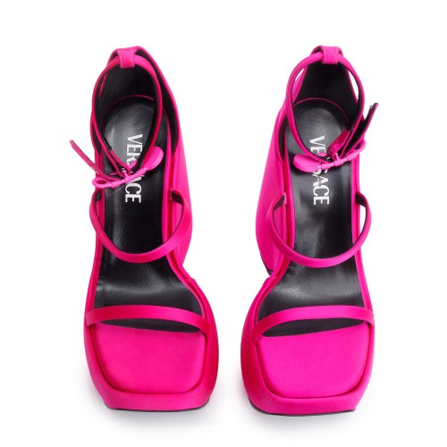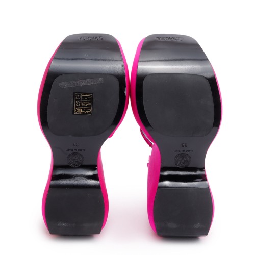 Versace Pink Satin Medusa Insignia Triplatform Wedge Sandals, Size 36