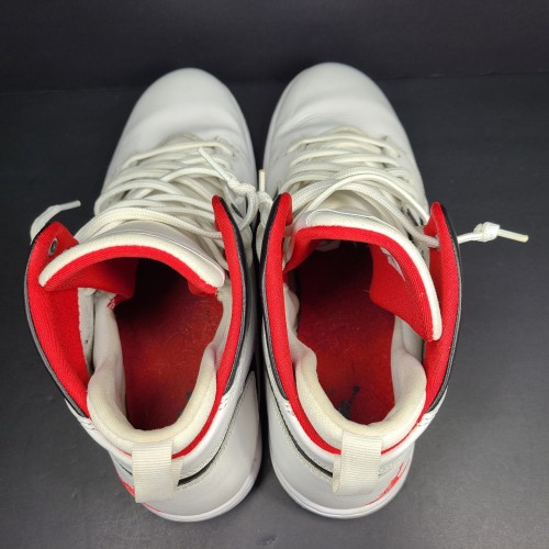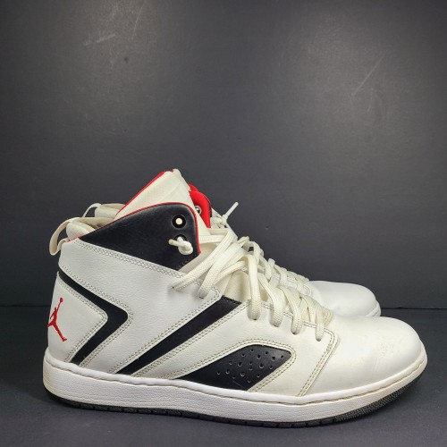 Elevate your sneaker game with these Air Jordan Flight Legend trainers in black and red. Featuring a mid-top shoe shaft style, lace-up closure, and adjustable fit, these sneakers are perfect for both casual and activewear occasions. The rubber outsole provides slip-resistant and cushioned features, making them ideal for basketball players and other athletes. The Jordan Flight Legend trainers have a sleek colorblock design with a leather upper material and fabric insole material.
