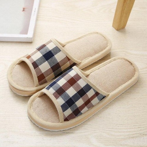 Women Indoor Slippers Flat Shoes Spring Autumn Linen Flip Flops Home Slippers Comfortable Memory Foam Slippers Lining Slip-On Lightweight Durable House Shoes