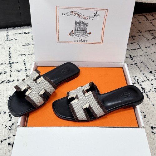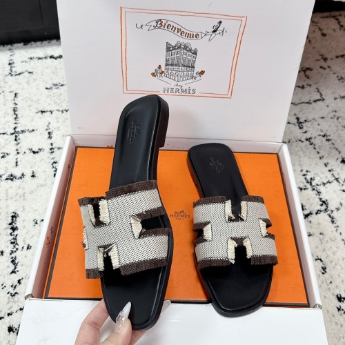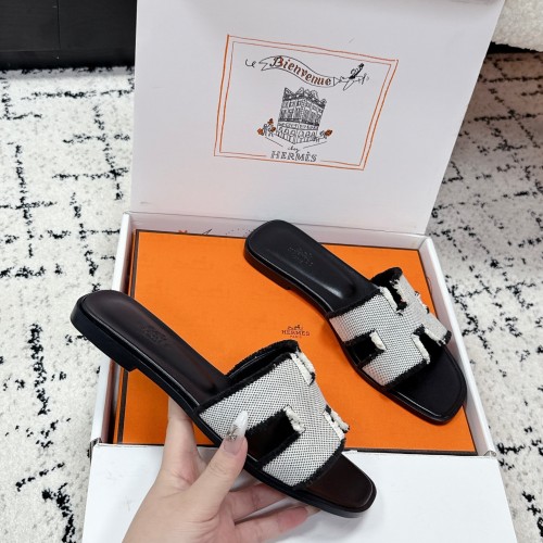 HM 26ss Oran Sandals Black White Brown Canvas Cowhide 617214