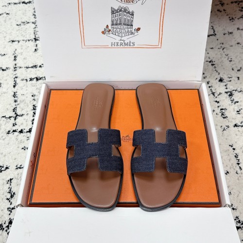 HM 26ss Oran Sandals Blue Brown Denim Cowhide 617181