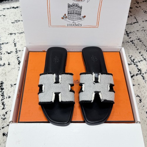 HM 26ss Oran Sandals Black White Canvas Cowhide 617213