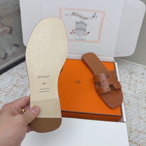 HM 26ss Oran Sandals Brown Ostrich Leather 625092