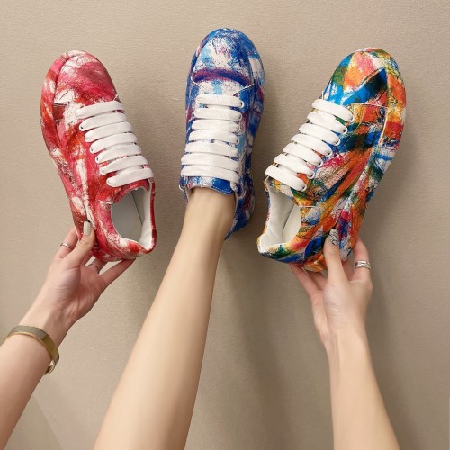 Painted Graffiti White Shoes Women Casual Fashion Platform Casual Shoes