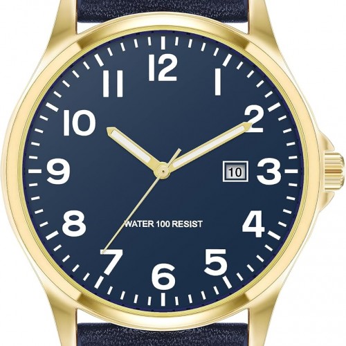 Amazon Essentials Men’s Easy to Read 42mm Leather Band Analog Watch